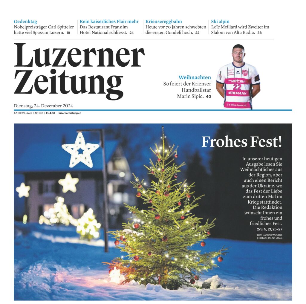 Für uns ist es eine grosse Ehre, dass unser Lichterweg das Titelbild der Luzerner Zeitung vom 24. Dezember 2024 zieren darf. Wir können uns den Worten der Luzerner Zeitung nur anschliessen und wünschen allen Besucherinnen und Besucher unseres Lichterweges ein frohes Fest. Wir bedanken bei dieser Gelegenheit ganz herzlich für die vielen schönen Begegnungen in diesem Jahr. Es hat uns sehr gefreut, dass unser Lichterweg in der Vorweihnachtszeit so zahlreich besucht wurde.